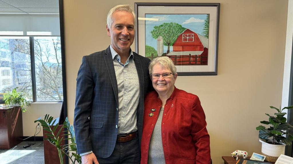 Mayor Siemens and BC Minister of Agriculture and Food Lana Popham (on the Mayor’s left) at a BC Dairy and BC Poultry post-flood animal producers’ roundtable event in Abbotsford. Also in attendance was BC Minister of Emergency Management and Climate Readiness Kelly Greene (not pictured).