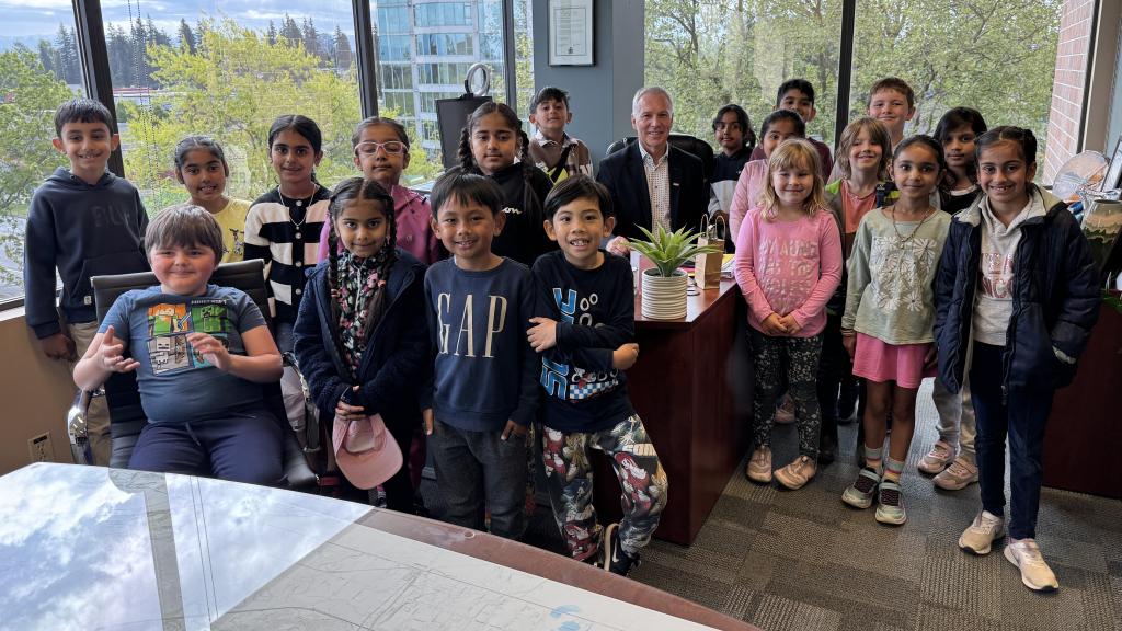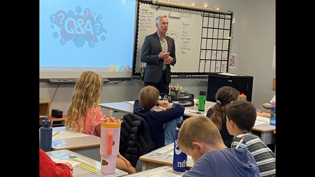 Mayor Siemens visited Nancy Worsley-Brown’s Grade 2 class at Abbotsford Christian School.