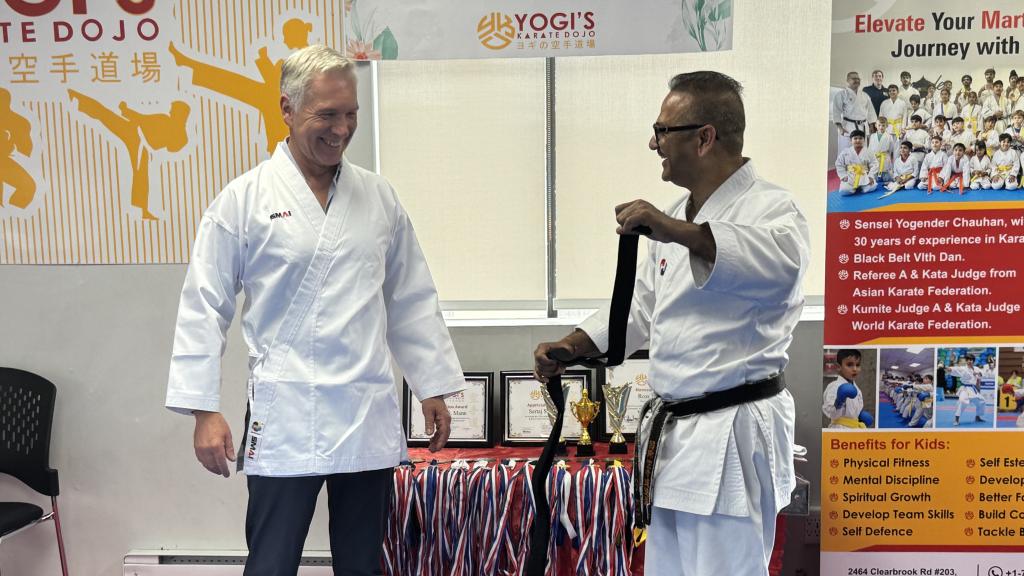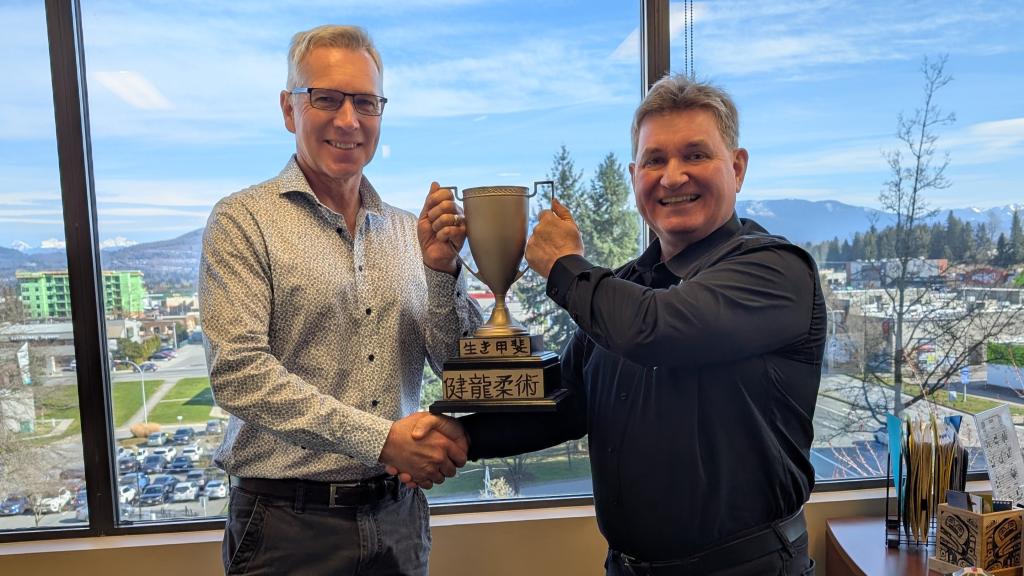 Ken Ryu Jujutsu Society president Kenneth Brake presented Mayor Siemens with his organization’s Community Cup in recognition of City Council and staff fostering a safe and inclusive environment where volunteers and organizations thrive, and for encouraging local innovation and solutions to meet social, health and wellness needs in our community.