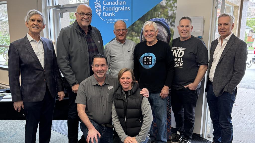 Mayor Siemens and Councillors Gibson and Barkman with Canadian Foodgrains Bank BC regional representative Jet Takaoka, Make a Difference Sale committee member Ed Vandenberg, volunteer Sheri Kampman, and chairs Bob and Rob Brandsma, at this year’s Make a Difference Sale wrap-up luncheon.
