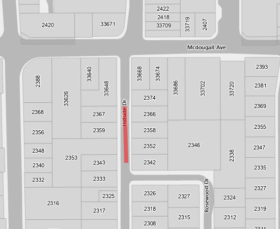 Hillside Drive Between McDougall Ave and Busby Road
